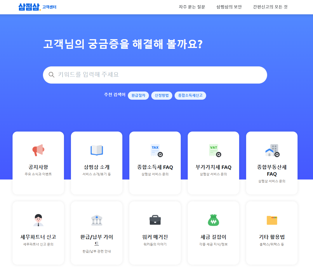 고객센터에서는 삼쩜삼 서비스와 관련된 다양한 지원을 제공합니다. 주요 서비스로는 계정 관리, 결제 문제 해결, 세금 환급 절차 안내, 고객 지원 관련 문의 등이 있습니다. 고객들은 사이트를 통해 자주 묻는 질문을 확인하고 필요한 정보를 찾을 수 있습니다. 또한, 서비스 장애나 문제 발생 시, 고객센터에 문의하여 신속한 도움을 받을 수 있습니다. 삼쩜삼은 고객 만족을 최우선으로 하여 다양한 지원을 제공하고 있습니다.