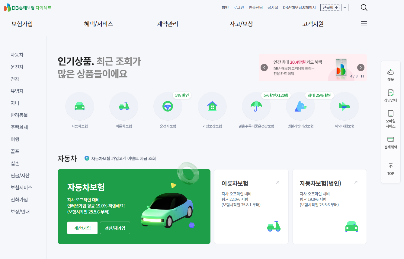 새롭게 자동차보험을 가입하거나 기존 보험 갱신, 상품 설명이 필요하다면