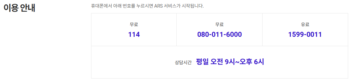 - 080-011-6000 (모든 전화기에서 가능, 무료)