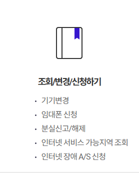 - 24시간 가능 서비스: 분실/정지/로밍/인터넷 장애 등 긴급 항목