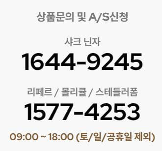 닌자 블렌더 AS 접수방법은 고객센터로 전화 또는 홈페이지 1:1 문의를 통해 할 수 있습니다.